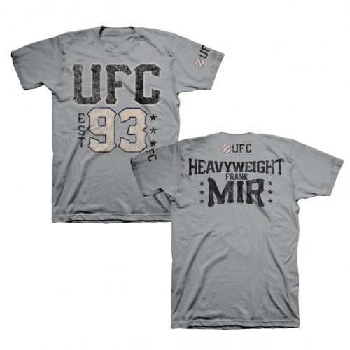 Dans le dos, on retrouve l’inscription « UFC Heavyweight Frank Mir ». La disposition me rappelle les vieilles affiches de galas de boxe (avec les petites étoiles).
