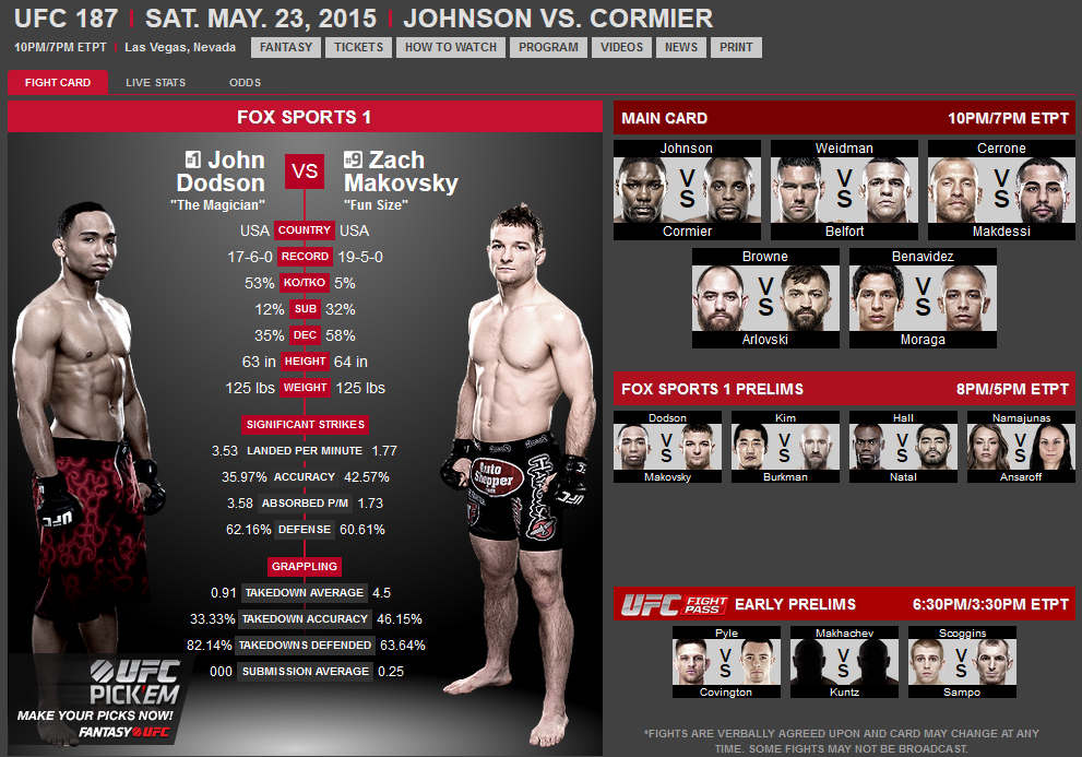 John Dodson (16-6) est vraiment un combattant sympathique, vous allez le voir dans cette interview ! Il fait son retour samedi dans l’Octogone après une longue blessure au genoux en 2014. Il affrontera samedi à l’UFC 187 Zach Makovsky (19-5) qui est en 9ème position au classement des flyweight. Une victoire de John lui permettrait de prendre sa revanche contre le champion Demetrious Johnson par la suite.
