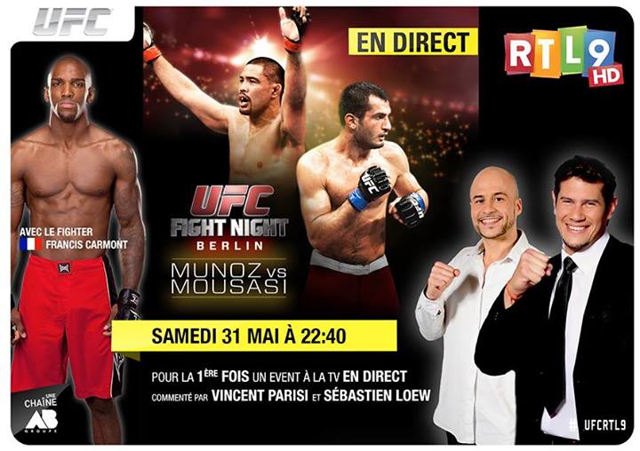 En exclusivité sur RTL9, vous allez pouvoir suivre en léger différé samedi 31 mai à 22h40, le live de l’UFC, commenté par Vincent Parisi et Sébastien Loew depuis l’O² World de Berlin !! Ne manquez pas cette soirée sur RTL9 !