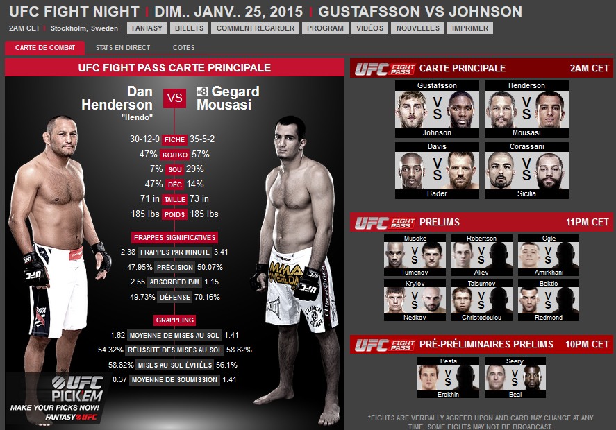 Les deux anciens champions du Strikeforce, Gegard Mousasi (35-5) et Dan Henderson (30-12) vont s’affronter prochainement à l’UFC Fight Night Gustafsson vs Johnson de Stockholm, le samedi 24 janvier. Le combattant hollandais, Gegard Mousasi accueillera Dan Henderson, 44 ans, pour son retour dans la catégorie des middleweights après avoir évolué quelques années en lourd-léger. « The Dreamcatcher » revient d’une défaite par soumission face à Jacaré auu 3ème round le 5 septembre dernier. S’il souhaite se relancer dans la course au titre, il devra donc se débarasser de Hendo et de sa fameuse H-Bomb.