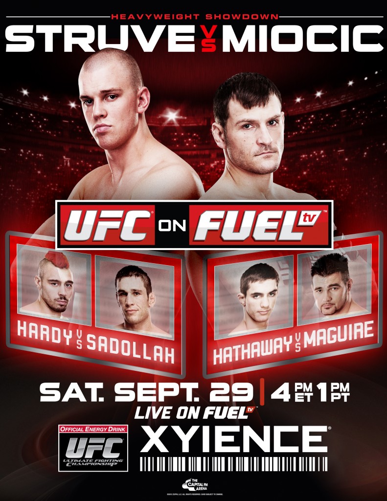 Cet UFC s’annonce intéressant avec un combat poids lourds en main event opposant Stefan « Skyscraper » Struve contre Stipe Miocic. Le Royaume-Uni sera fièrement représenté lors de cet event par la présence de Dan « The Outlaw » Hardy qui affrontera le vainqueur de la saison 7 de The Ultimate Fighter: Amir Sadollah. Mais aussi en welterweight John « The Hitman » Hathaway qui rencontrera John « The One » Maguire. J’aurai plaisir à voir le combat de DaMarques Johnson que j’avais rencontré par hasard à Stockholm dans un resto…