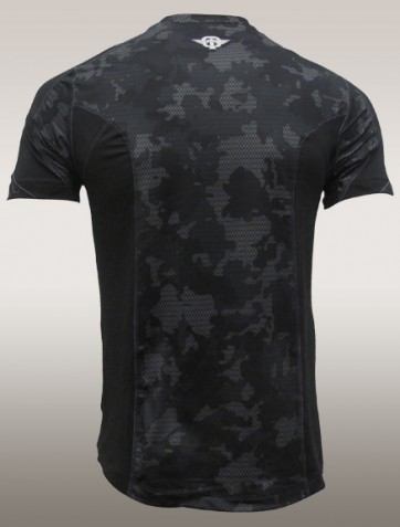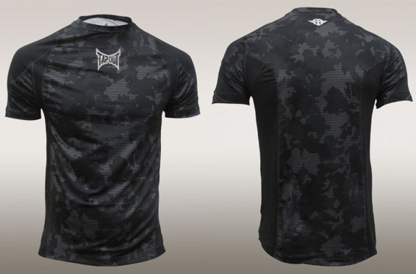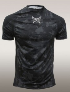Voici le T-shirt que Jim Miller a porté pour son entrée ce week end face à Guillard lors de l’UFC on FX à Nashville, Tennessee. Il s’agit là d’un T-shirt en polyester extra léger, mélangé avec du spandex pour un ajustement parfait. Les grandes parties noires sont en maille pour l’aération. Un petit logo TapouT est présent au niveau du torse. Le style Camo numérique est vraiment stylé !!
