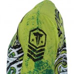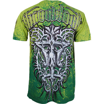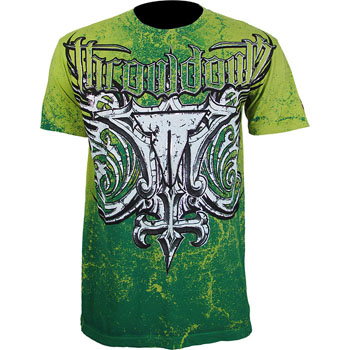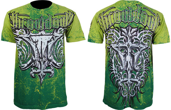 Des couleurs vives et différent tons de vert feront tourner les têtes quand vous le porterez à la salle ou dans la rue. Le devant du shirt arbore un design fleuri style gothique avec le texte et le logo de Throwdown. Des rayures de style militaire sont imprimées sur la manche gauche, et la conception complexe et intimidante dans le dos est plutôt bien faite.